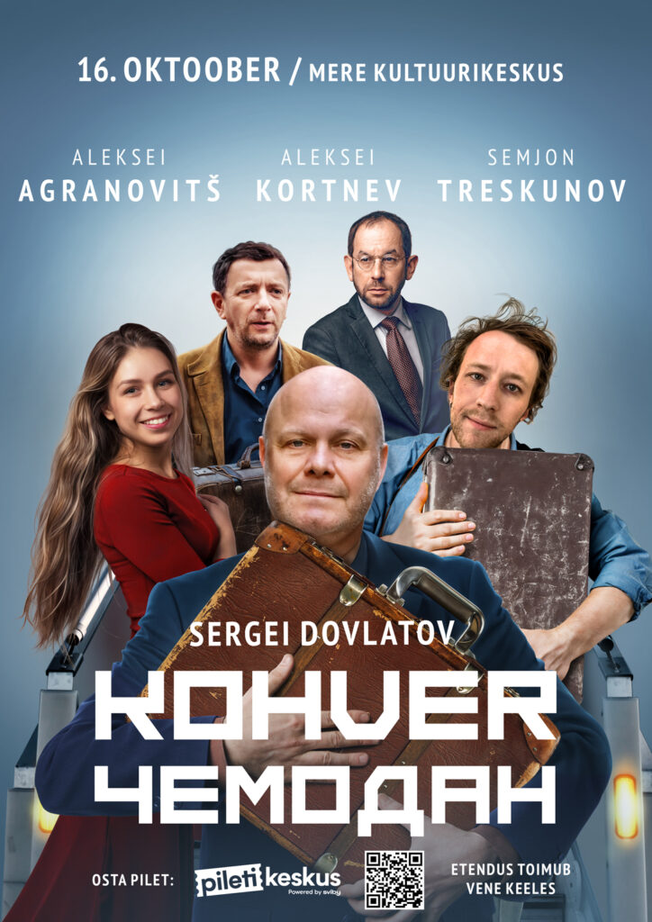 Näitlejad Aleksei Kortnev, Aleksei Agranovitš, Semjon Treskunov ja teised esitavad Tallinnas lavastust “Kohver” – Sergei Dovlatovi jutustuste ainetel