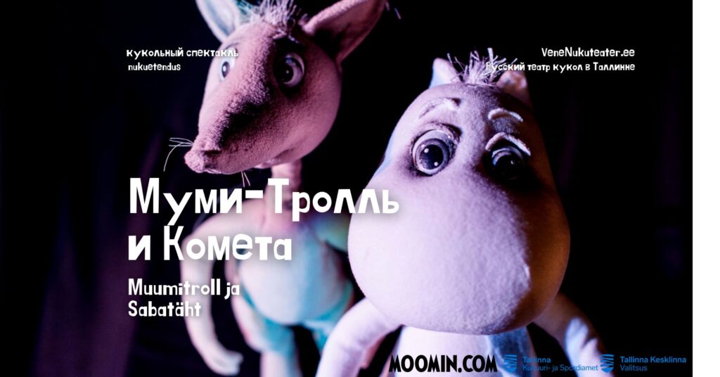 «Муми-тролль и комета» по повести Туве Янссон В Долине Муми-троллей жизнь течёт спокойно и размеренно. Но однажды повсюду начинают появляться таинственные знаки. Что это? Комета?! Если это она, то куда же она летит? Муми-тролль, его верный друг Снифф решают отправиться в путешествие к далёкой обсерватории, где стоит самый большой телескоп на свете. По пути им встречается вечный странник Снусмумрик. Вместе им предстоит проделать непростой путь, чтобы посмотреть в глаза своих страхов, а главное, разобраться в себе. Этот спектакль о страхе перед надвигающимся неизвестным, о храбрости и дружбе, о том, как даже самые маленькие существа могут смело заглянуть в лицо опасности и научиться поддерживать друг друга. Художник: Ирина Марьяпуу Режиссер: Роман Максимук Композитор: Ксения Земская-Черткова Декорации: Елена Иванова Свет: Вацлав Дембинский Актеры: Дмитрий Кордас, Карин Ламсон, Юлия Зозуля, Виктория Кравец, Диана Якимова Продолжительность : 45 мин Рекомендуемый возраст: 4+ Театр благодарит за поддержку: Tallinna Kultuuri- ja Spordiamet ja Tallinna Kesklinna Valitsus