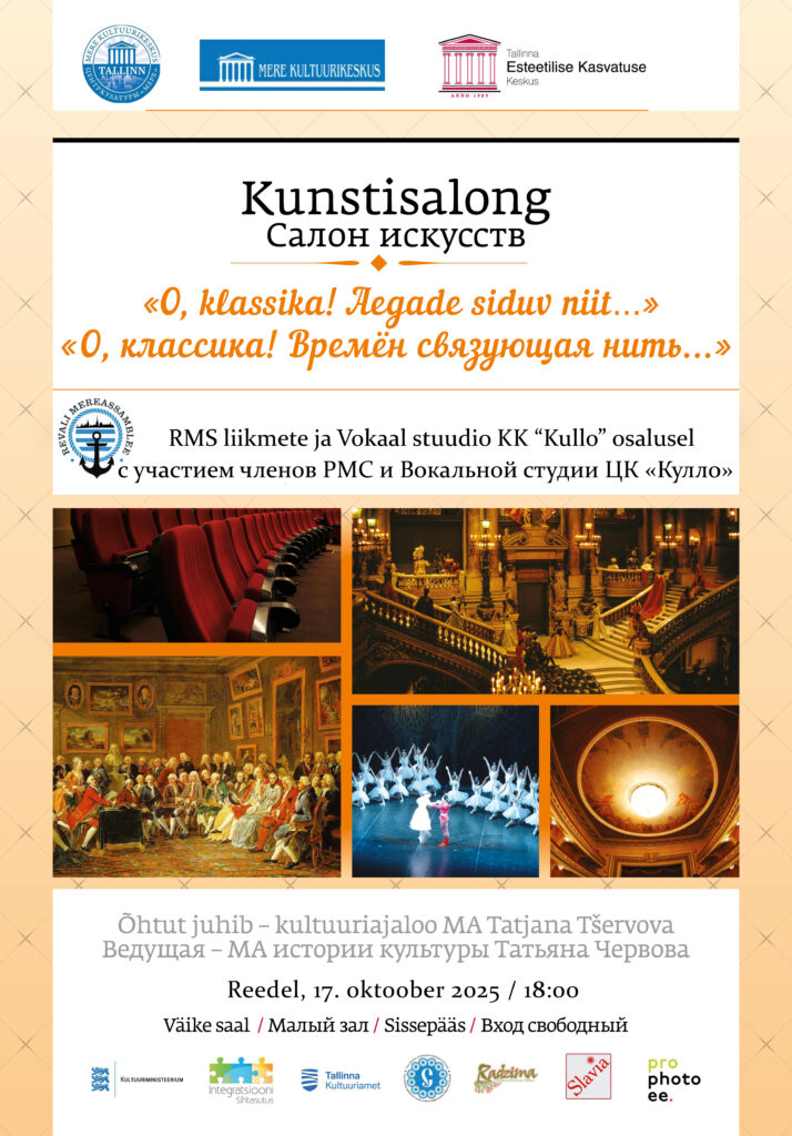 К тому же, благодаря членам «РМС, 2024 г. / или КВФ» предстоящий вечер нам подарит воспоминания о деятельности в 1851 – 1923 годах «Ревельского Морского собрания». А воссозданию классической атмосферы вечеров в историческом РМС (Ратушная пл., 14 – ныне Дом учителя) содействует участие исполнителей Студии классического вокала ЦИ «Кулло» (руководитель — сопрано Т. Тимофеева).