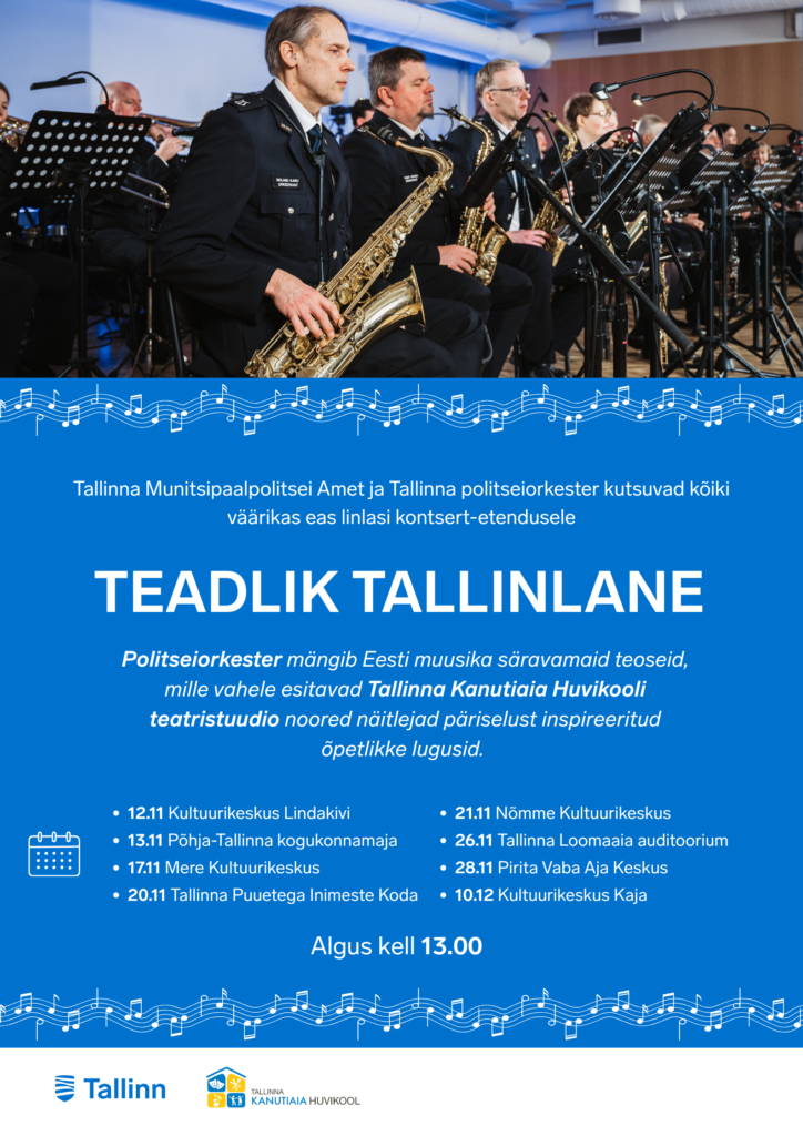 Tallinna Munitsipaalpolitsei Amet, Tallinna Politseiorkester ja Tallinna Kanutiaia Huvikooli teatristuudio noored näitlejad toovad publiku ette erilise kontsert-etenduse „Teadlik tallinlane“, mis ühendab muusika ja ennetustöö.